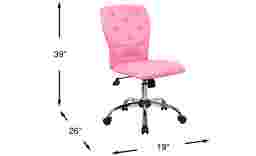 Study in style with the glamorous Lucille desk chair! This plush swivel chair is upholstered in tufted pink Microfiber featuring stylish stud detail. Featuring an adjustable seat height and smooth rolling castor wheels, this chair keeps you comfy and focused. Customer assembly required. 100% Polyester Microfiber