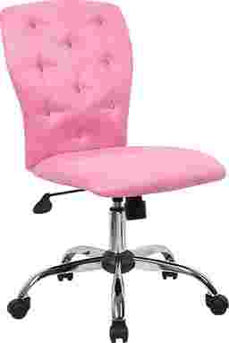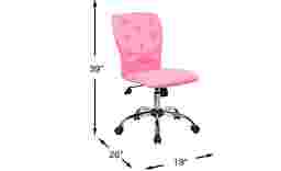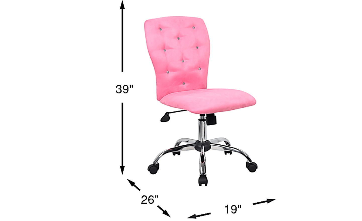 Study in style with the glamorous Lucille desk chair! This plush swivel chair is upholstered in tufted pink Microfiber featuring stylish stud detail. Featuring an adjustable seat height and smooth rolling castor wheels, this chair keeps you comfy and focused. 100% Polyester Microfiber