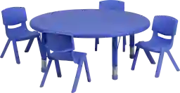 The round table shape is intentionally designed for collaboration, allowing children to sit at any point around the perimeter with equal access to the center. This layout naturally encourages sharing and interaction during group activities like puzzles or building blocks. Because the chairs are lightweight and the table is built for durability, it serves as a versatile hub for both educational activities and social birthday parties or play dates.