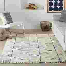 Bring the fresh spirit of nature's rugged beauty into your home with the contemporary and versatile Meandry rug. It features a loop pile that is artisanally hand-tufted for exceptional texture. The borderless designs with serged edge complete its clean and modern look, while the earth-tones palette and bold linear patterns give the Meandry a touch of rustic appeal. These rugs will work beautifully with a range of decors from the sophisticated urban loft to the modern farmhouse. Made of durable and low-shed wool fibers, ideal for easy care and casual style in your living room, bedroom, dining room, family room or other favorite spot. Bold and textural as tree bark, the graphic lines of this rug design move in counterpoint for a look as fresh as a mountain breeze. Its hand-tufted, loop pile lends an artisanal feel. Made of low-shed wool for both softness and durability, in a contemporary white-on-blue duotone. Customer assembly is required.