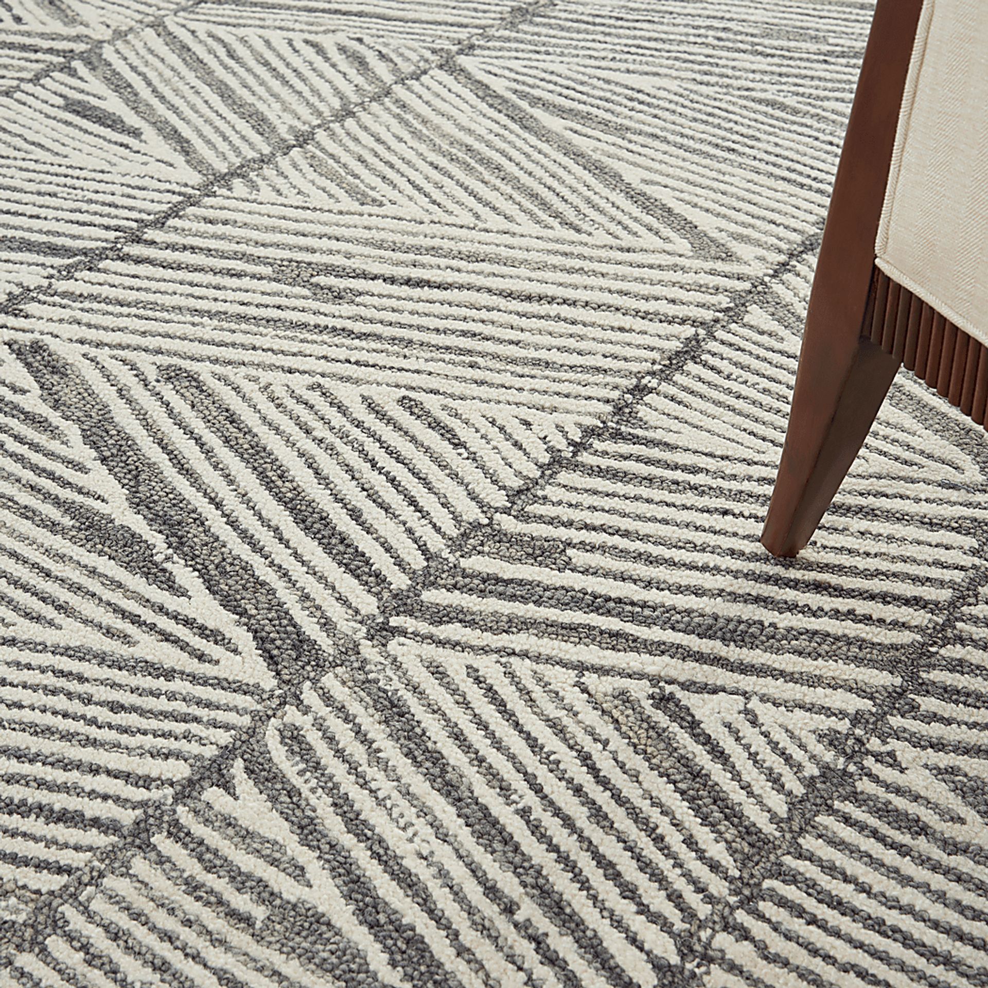 Bring the fresh spirit of nature's rugged beauty into your home with the contemporary and versatile Meandry rug. It features a loop pile that is artisanally hand-tufted for exceptional texture. The borderless designs with serged edge complete its clean and modern look, while the earth-tones palette and bold linear patterns give the Meandry a touch of rustic appeal. These rugs will work beautifully with a range of decors from the sophisticated urban loft to the modern farmhouse. Made of durable and low-shed wool fibers, ideal for easy care and casual style in your living room, bedroom, dining room, family room or other favorite spot. Bold and textural as tree bark, the graphic lines of this rug design move in counterpoint for a look as fresh as a mountain breeze. Its hand-tufted, loop pile lends an artisanal feel. Made of low-shed wool for both softness and durability, in a contemporary grey and white duotone. Customer assembly is required.