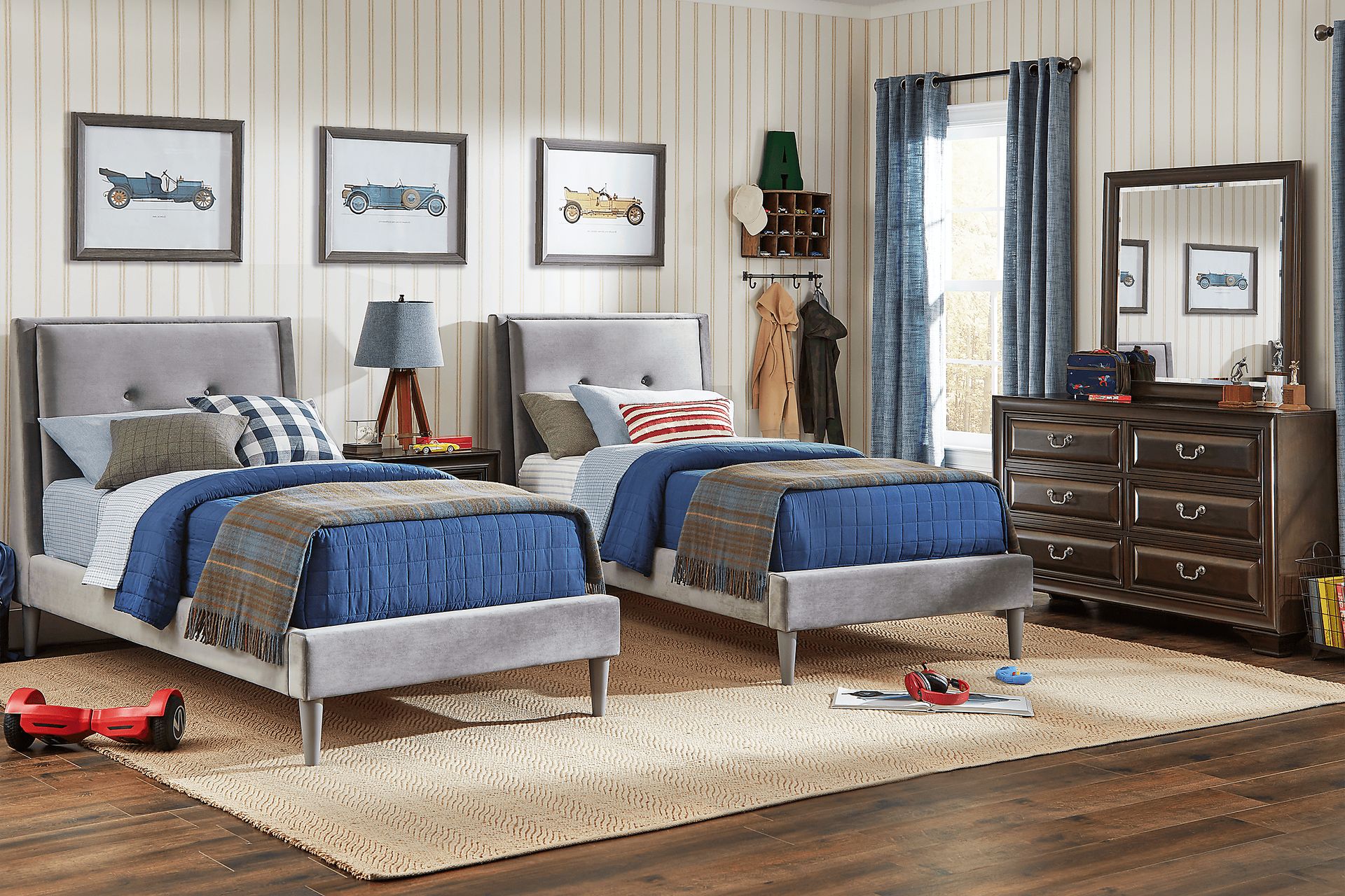 Kids Mill Valley Jr. Cherry 5 Pc Bedroom With Jaidyn Gray Twin Upholstered Bed