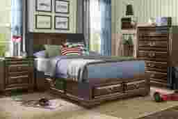 Provide your kid or teen with the perfect centerpiece for their bedroom with the Mill Valley Jr. storage bed. This bed brings the best to your child's room with an attractive window-pane style sleigh headboard as well as four storage drawers built into the rails. This bed is crafted of pine wood solids and veneers in a rich cherry-brown finish for a classic look and durable construction. Mattress and foundation (if required) sold separately.