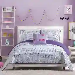 Absolutely. This quilt features a reversible design that offers two distinct looks in one. You can showcase the whimsical dark purple polka dot print for a playful atmosphere or flip it to the solid purple side for a more understated, mature aesthetic. This flexibility allows the bedding to evolve alongside your child's changing style preferences.