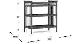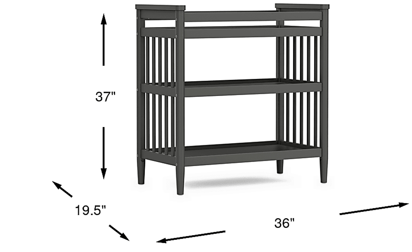 Timeless charm meets gentle nursery comfort in the ingeniously designed Modern Colors changing table. This versatile piece offers a safe and convenient spot for daily care routines. Two spacious shelves provide open storage for diapers, wipes and more easy to reach essentials. Iron ore finish keeps the look nice and versatile. Tapered spun legs complete the design with a chic, modern touch that coordinates seamlessly an array of nursery styles. Changing pad sold separately.