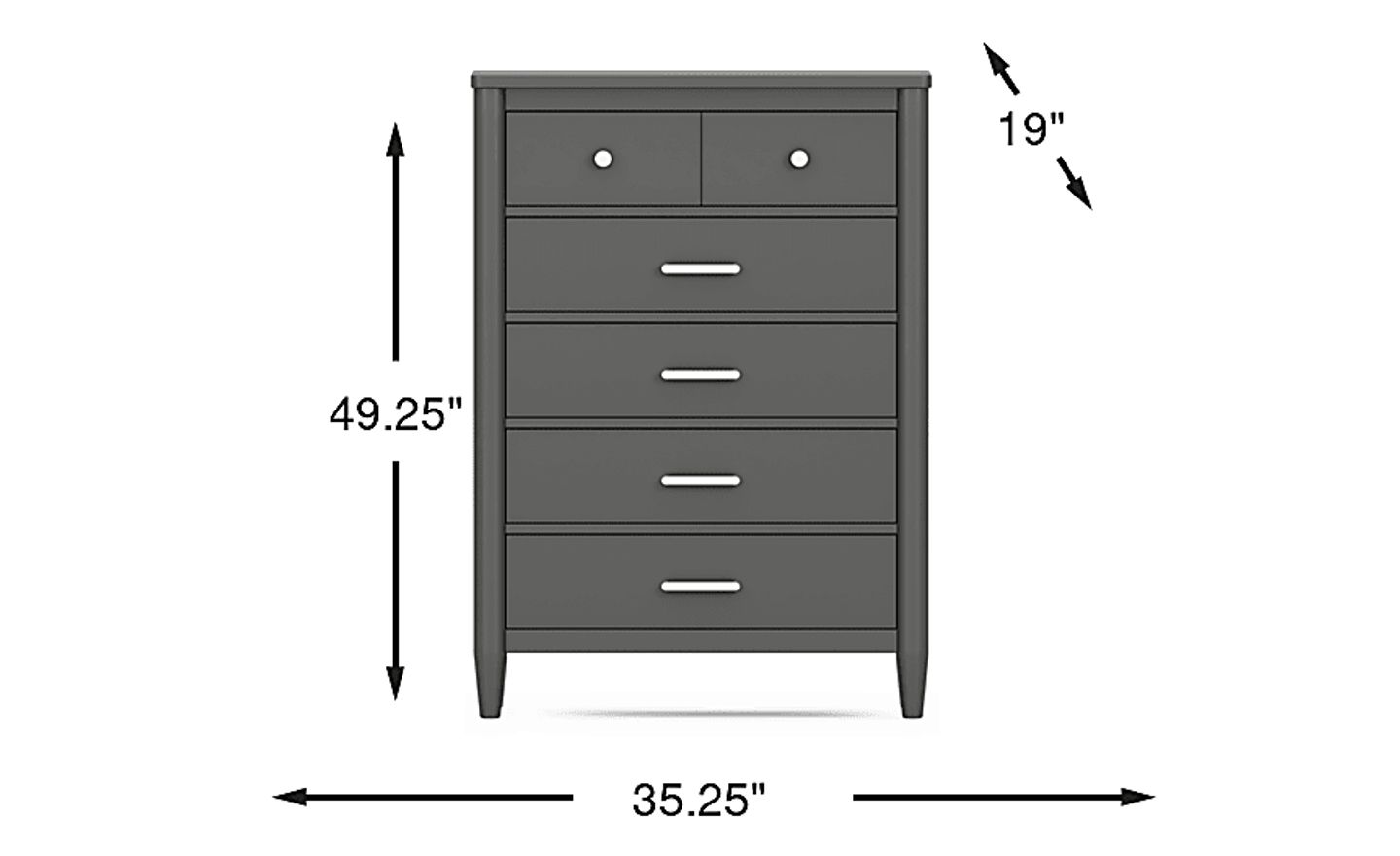 This chest is an excellent solution for maximizing storage in compact living environments. By utilizing a vertical design—measuring approximately 35 inches wide and 49 inches tall—it provides five spacious drawers while maintaining a small floor footprint. The tapered legs and sleek modern profile further enhance the sense of space, making it ideal for urban apartments or smaller secondary bedrooms.