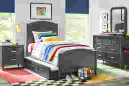 The ultimate style for your color obsession is finally here with the Modern Colors dresser. Constructed from poplar solids in iron ore finish, this piece balances ultra-sleek craftsmanship with an easygoing look. Each of the seven drawers are sanded smooth to help store clothing, extra bedlinens and more. The drawers are crafted with front French dovetail joints and have ball bearing, side mounted glides. Knobs on the top three drawers and pulls on the remaining four drawers are finished in brushed nickel. Brushed gold hardware is also included with purchase. Tapered spun legs supply the dresser with a chic final touch.