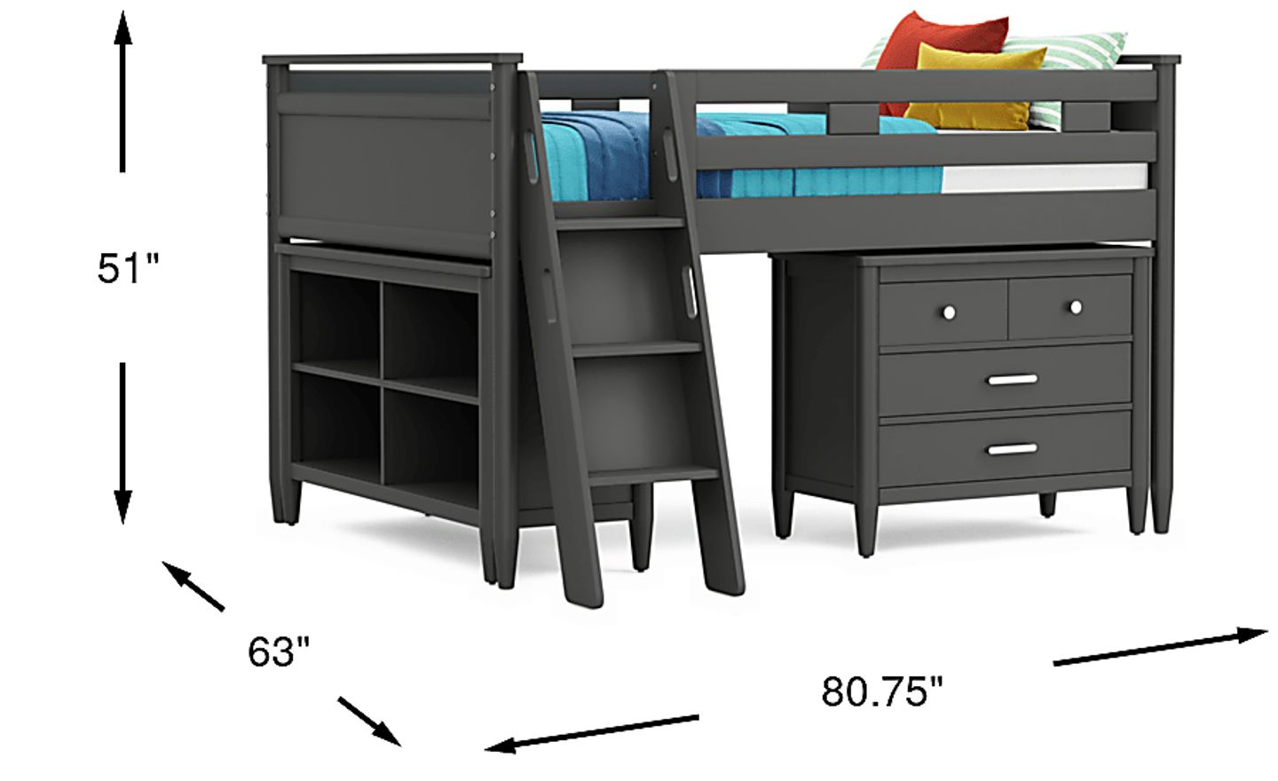 Kids Modern Colors Iron Ore Full Loft With Loft Chest And Bookcase