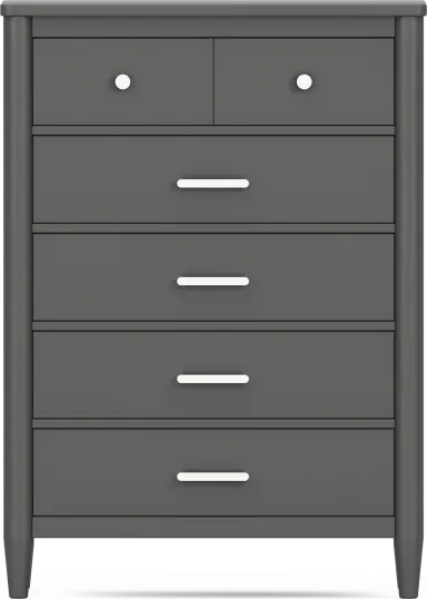The ultimate collection for your color obsession is finally here with the Modern Colors full low loft bed. Showcasing an iron ore finish, each piece balances ultra-sleek craftsmanship with easygoing comfort. Featuring a full bed that sits lower to the ground than a traditional loft, this piece features a ladder that affixes to the side of the frame for three easy steps up and three easy steps down. The coordinating loft chest has three drawers crafted with front French dovetail joints and ball bearing, side mounted glides. A matching 52-inch bookcase can shelve books, comics, magazines, decor and more. The hardware is finished in brushed nickel but brushed gold knobs and pulls are also included with purchase. Mattress and foundation (if required) sold separately. This product requires a bunkie board (sold separately).