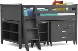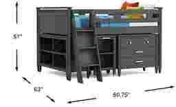This comprehensive loft system is engineered for maximum utility within a single footprint. It features a three-drawer loft chest for clothing, a 52-inch bookcase for media and decor, and a dedicated study area. The included caster desk is a standout feature for productivity, providing a stable work surface along with two integrated cubbies perfect for organizing textbooks and school supplies.