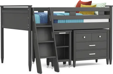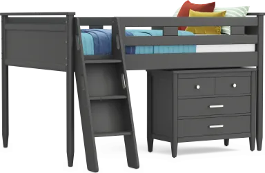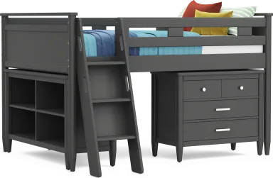 Kids Modern Colors Iron Ore Full Loft With Loft Chest, Bookcase And Desk
