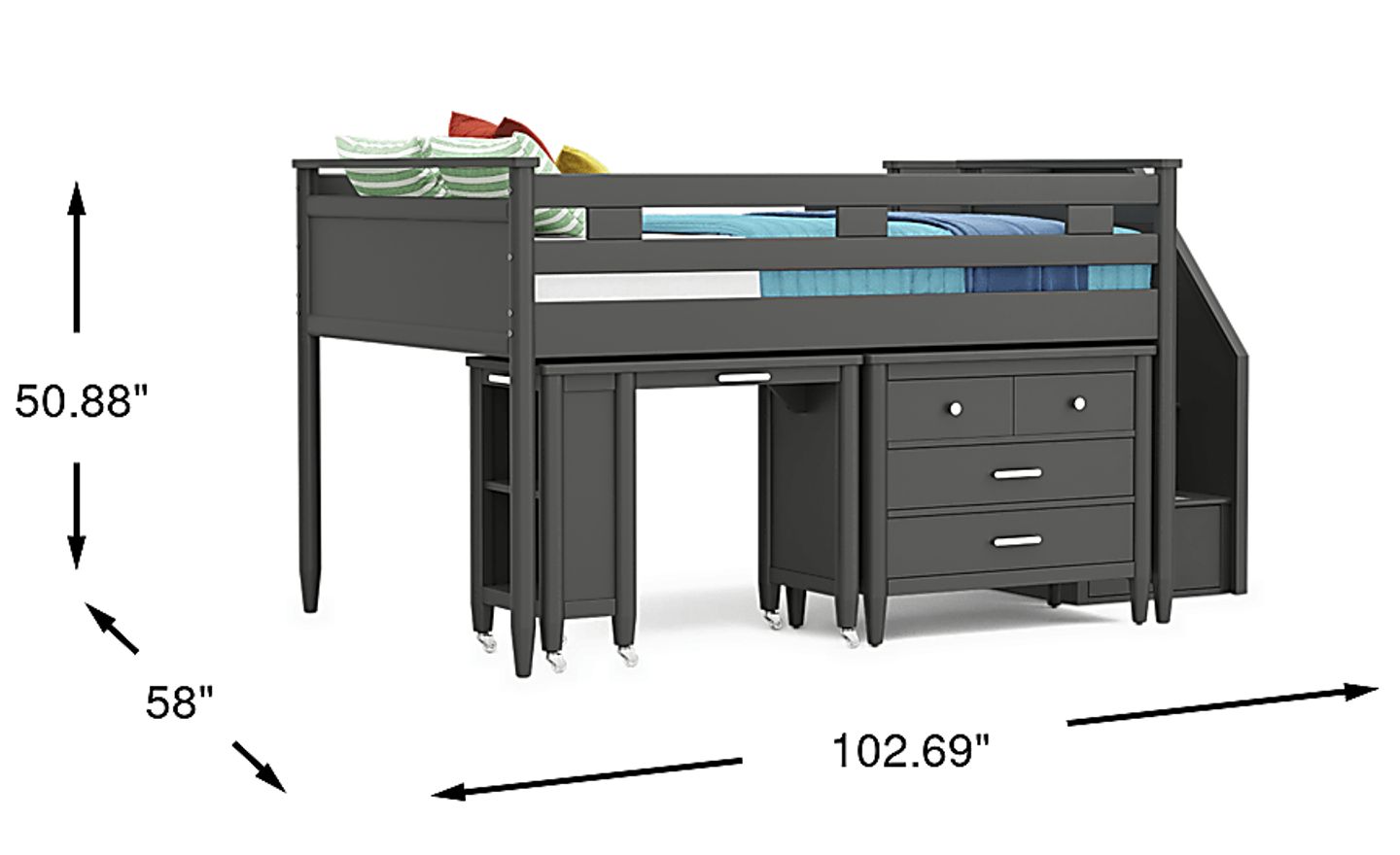 Kids Modern Colors Iron Ore Full Step Loft With Loft Chest And Desk