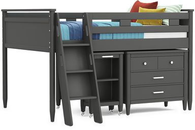 Kids Modern Colors Iron Ore Full Step Loft With Loft Chest, Bookcase And Desk