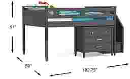 Following standard safety guidelines for elevated sleeping, this loft bed is recommended for children aged 6 and older. The low-loft design, standing at approximately 51 inches, is specifically engineered to offer a safer, more accessible height for younger children compared to high-loft models. The integrated staircase provides a wide, stable path to the sleeping area, which is often preferred by parents over traditional vertical ladders.