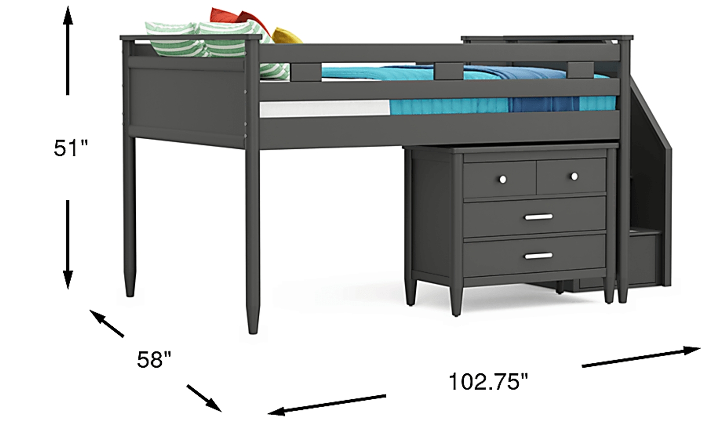 Kids Modern Colors Iron Ore Full Step Loft With Loft Chest