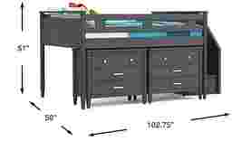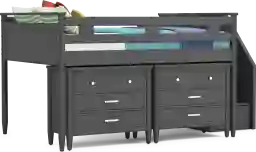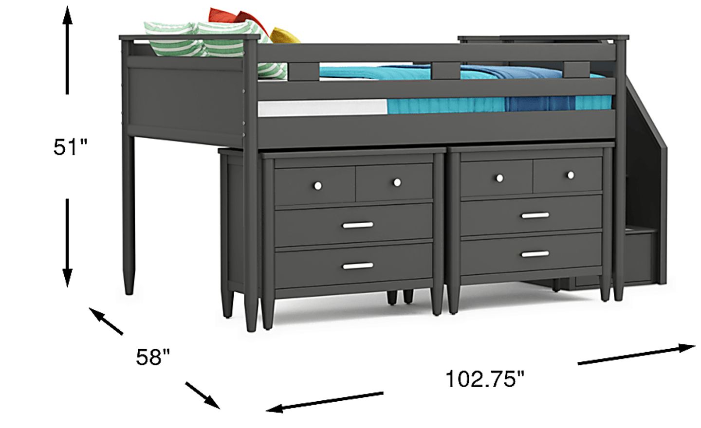 Kids Modern Colors Iron Ore Full Step Loft With Loft Chests