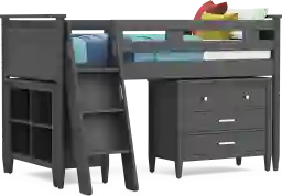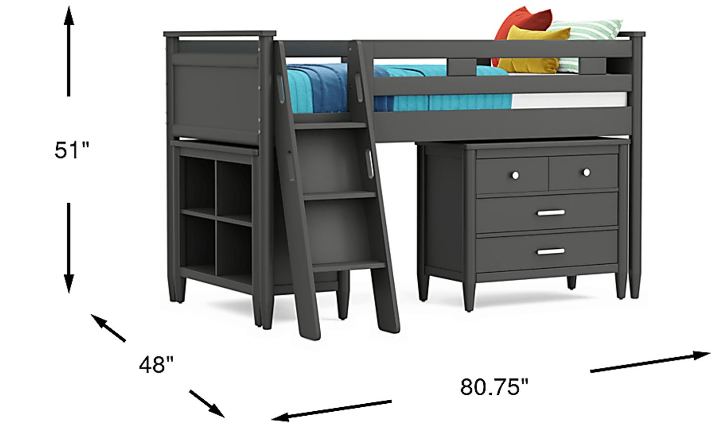 Kids Modern Colors Iron Ore Twin Loft With Loft Chest And Bookcase