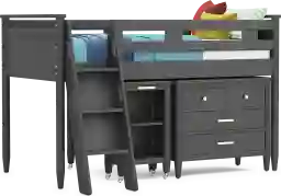 Kids Modern Colors Iron Ore Twin Loft With Loft Chest And Desk