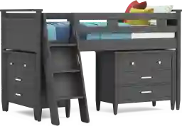 Kids Modern Colors Iron Ore Twin Loft With Loft Chests