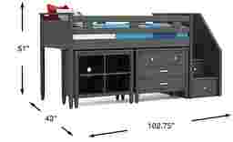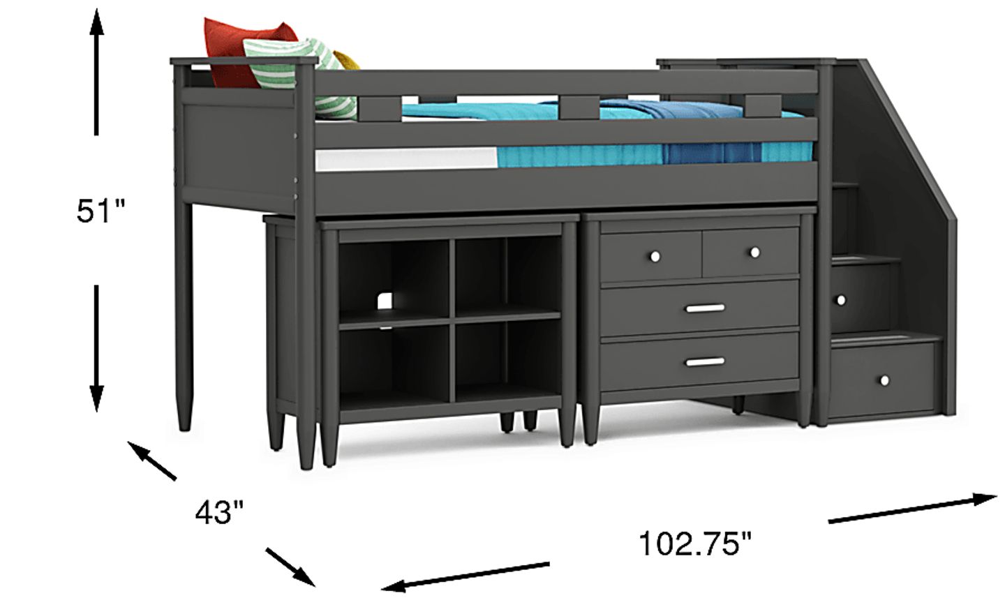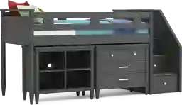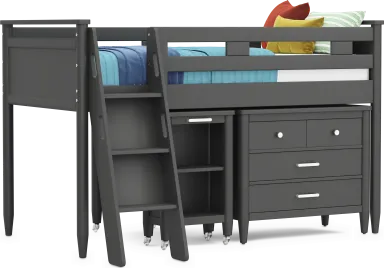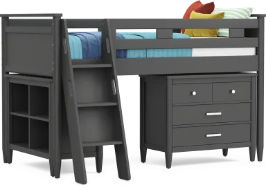 Kids Modern Colors Iron Ore Twin Step Loft With Loft Chest And Bookcase