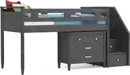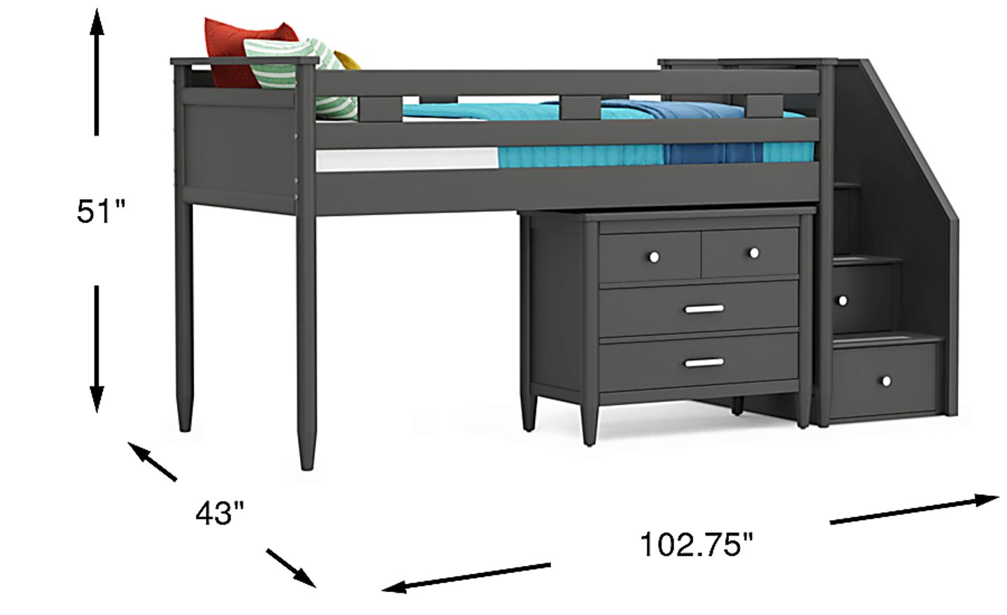Kids Modern Colors Iron Ore Twin Step Loft With Loft Chest