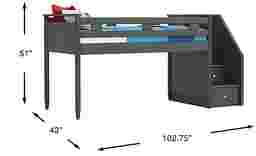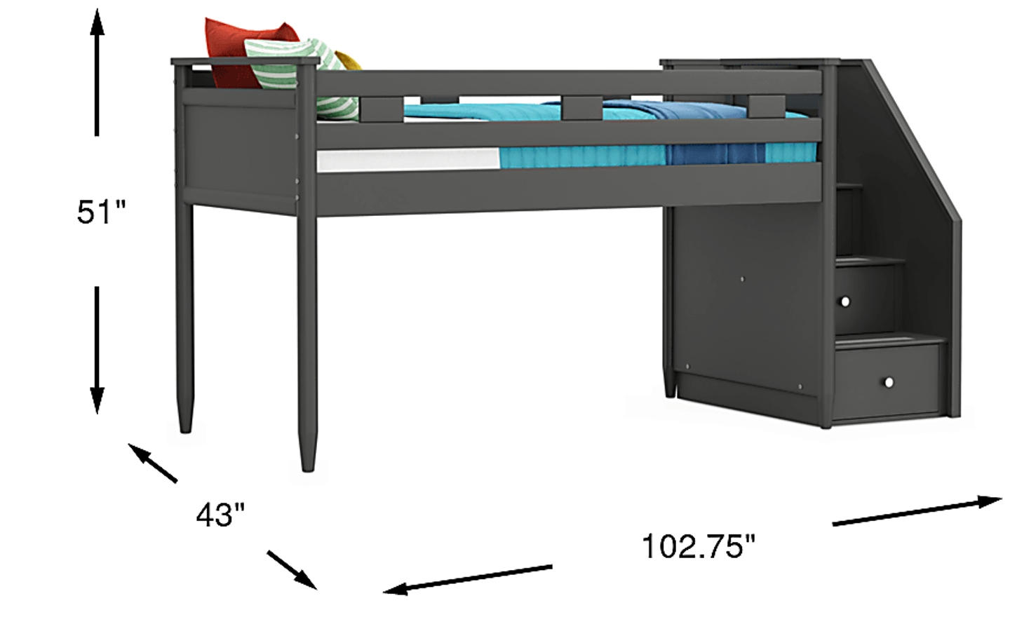 The ultimate collection for your color obsession is finally here with the Modern Colors twin low loft bed. Showcasing an iron ore finish, each piece balances ultra-sleek craftsmanship with easygoing comfort. Featuring a twin bed that sits lower to the ground than a traditional loft, this piece has a reversible staircase that can be affixed to either side of the bed. The steps feature storage drawers that are perfect for stashing away clothing, books and more. Mattress and foundation (if required) sold separately. This product requires a bunkie board (sold separately).
