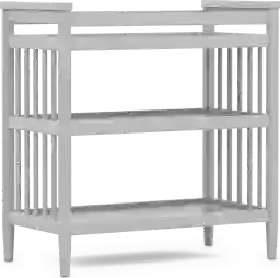 Timeless charm meets gentle nursery comfort in the ingeniously designed Modern Colors changing table. This versatile piece offers a safe and convenient spot for daily care routines. Two spacious shelves provide open storage for diapers, wipes and more easy to reach essentials. Light gray finish keeps the look nice and versatile. Tapered spun legs complete the design with a chic, modern touch that coordinates seamlessly an array of nursery styles. Changing pad sold separately.