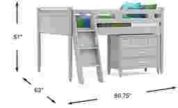 The ultimate collection for your color obsession is finally here with the Modern Colors full low loft bed. Showcasing light gray finish, each piece balances ultra-sleek craftsmanship with easygoing comfort. Featuring a full bed that sits lower to the ground than a traditional loft, this piece features a ladder that affixes to the side of the frame for three easy steps up and three easy steps down. The coordinating loft chest has three drawers crafted with front French dovetail joints and ball bearing, side mounted glides. The hardware is finished in brushed nickel but brushed gold knobs and pulls are also included with purchase. Mattress and foundation (if required) sold separately. This product requires a bunkie board (sold separately).