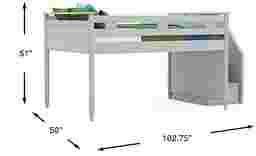 The ultimate collection for your color obsession is finally here with the Modern Colors full low loft bed. Showcasing light gray finish, each piece balances ultra-sleek craftsmanship with easygoing comfort. Featuring a full bed that sits lower to the ground than a traditional loft, this piece has a reversible staircase that can be affixed to either side of the bed. The steps feature storage drawers that are perfect for stashing away clothing, books and more. Mattress and foundation (if required) sold separately. This product requires a bunkie board (sold separately).