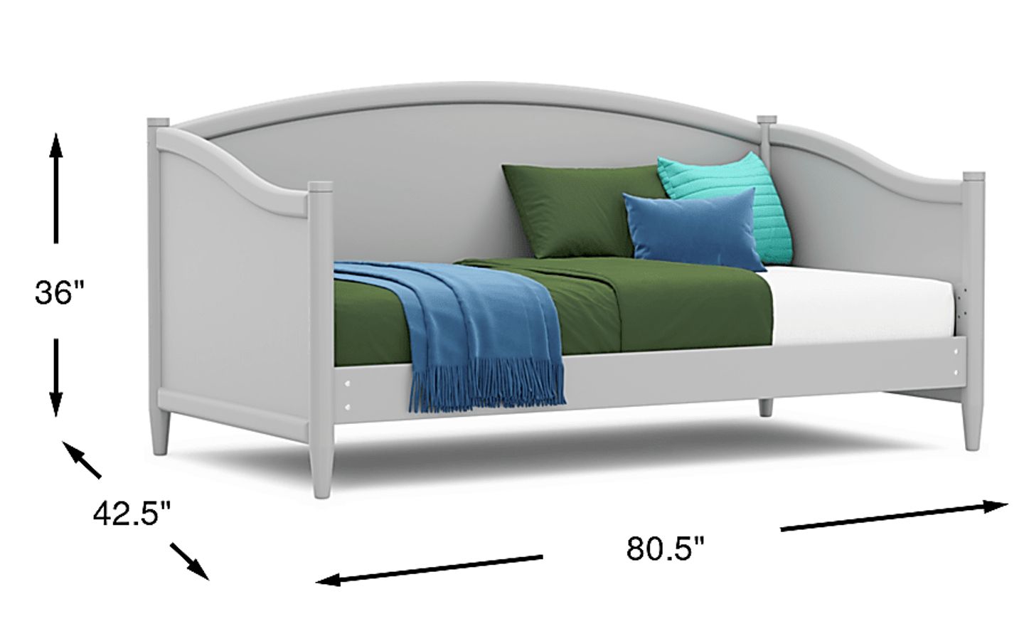 The ultimate style for your color obsession is finally here with the Modern Colors twin daybed. Showcasing light gray finish, this piece balances ultra-sleek craftsmanship with easygoing comfort. Subtle molding on the headboard boasts a gentle arch that is echoed by the two raised end panels on both Mattress and foundation (if required) sold separately.