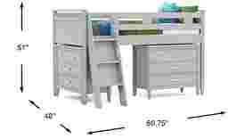 The ultimate collection for your color obsession is finally here with the Modern Colors twin low loft bed. Showcasing light gray finish, each piece balances ultra-sleek craftsmanship with easygoing comfort. Featuring a twin bed that sits lower to the ground than a traditional loft, this piece features a ladder that affixes to the side of the frame for three easy steps up and three easy steps down. Two coordinating loft chests have three drawers crafted with front French dovetail joints and ball bearing, side mounted glides. The hardware is finished in brushed nickel but brushed gold knobs and pulls are also included with purchase. Mattress and foundation (if required) sold separately. This product requires a bunkie board (sold separately).