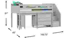 Kids Modern Colors Light Gray Twin Step Loft With Loft Chest And Desk