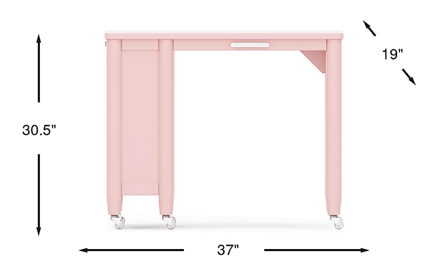 The ultimate style for your color obsession is finally here with the Modern Colors caster desk. Showcasing pink finish, this piece balances ultra-sleek craftsmanship with an easygoing look. Featuring wheels that make it easy to move around, the desk is also equipped with a couple cubbies that are perfect for textbooks, homework supplies and more. The hardware is finished in brushed nickel but brushed gold knobs and pulls are also included with purchase.