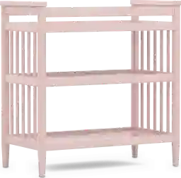Timeless charm meets gentle nursery comfort in the ingeniously designed Modern Colors changing table. This versatile piece offers a safe and convenient spot for daily care routines. Two spacious shelves provide open storage for diapers, wipes and more easy to reach essentials. Pink finish keeps the look nice and versatile. Tapered spun legs complete the design with a chic, modern touch that coordinates seamlessly an array of nursery styles. Changing pad sold separately.