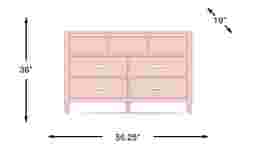 With dimensions of 56.25"w x 19"d x 36"h, this dresser provides substantial storage without a massive footprint. Its 36-inch height makes it an ideal height for multi-functional use, such as a changing station in a compact nursery. Additionally, the tapered spun legs lift the piece off the ground, creating a sense of "visual airiness" that helps a small room or urban apartment feel more open and less cluttered.