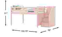 The ultimate collection for your color obsession is finally here with the Modern Colors full low loft bed. Showcasing pink finish, each piece balances ultra-sleek craftsmanship with easygoing comfort. Featuring a full bed that sits lower to the ground than a traditional loft, this piece has a reversible staircase that can be affixed to either side of the bed. The steps feature storage drawers that are perfect for stashing away clothing, books and more. Mattress and foundation (if required) sold separately. This product requires a bunkie board (sold separately).