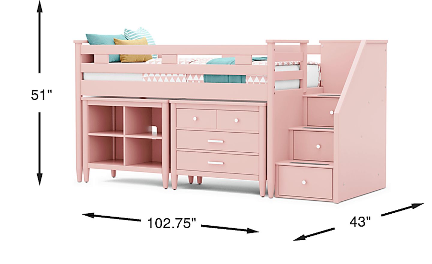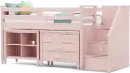 Kids Modern Colors Pink Twin Step Loft With Loft Chest And Bookcase