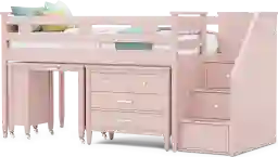 Kids Modern Colors Pink Twin Step Loft With Loft Chest And Desk