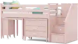 This set is designed to be a complete room solution, maximizing every square inch of a child's bedroom. It includes a coordinating 3-drawer loft chest for clothing and a rolling caster desk for study time. Beyond the chest, the staircase steps themselves feature integrated storage drawers, perfect for stashing away books, toys, or seasonal items. This comprehensive approach helps keep smaller bedrooms organized and eliminates the need for multiple standalone pieces of furniture.