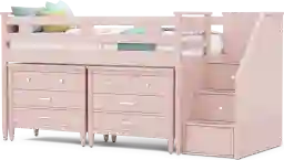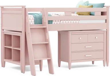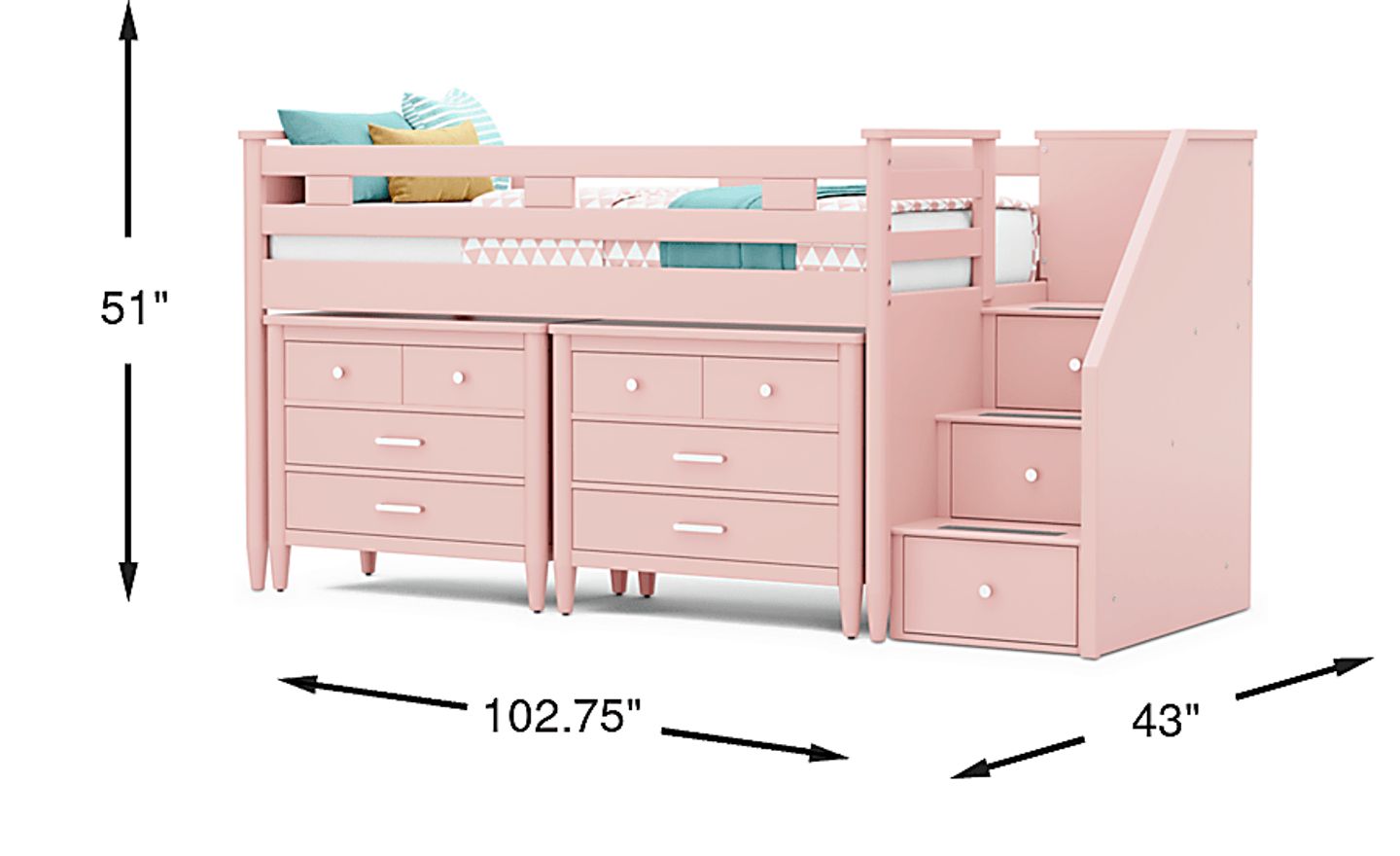 Kids Modern Colors Pink Twin Step Loft With Loft Chests