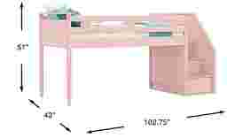 The ultimate collection for your color obsession is finally here with the Modern Colors twin low loft bed. Showcasing pink finish, each piece balances ultra-sleek craftsmanship with easygoing comfort. Featuring a twin bed that sits lower to the ground than a traditional loft, this piece has a reversible staircase that can be affixed to either side of the bed. The steps feature storage drawers that are perfect for stashing away clothing, books and more. Mattress and foundation (if required) sold separately. This product requires a bunkie board (sold separately).