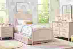 The ultimate collection for your color obsession is finally here with the Modern Colors twin XL panel bedroom. Constructed from poplar solids in pink finish, each piece balances ultra-sleek craftsmanship with easygoing comfort. Subtle molding on the headboard boasts a gentle arch that is echoed by the bed's footboard. Adjustable side rails offer two heights for accessibility, making them easy to lower or raise as needed. The coordinating dresser has seven drawers to help store clothing, extra bedlinens and more. Each drawer has front French dovetail joints with ball bearing, side mounted glides. Knobs on the top three drawers and pulls on the remaining four drawers are finished in brushed nickel. Brushed gold hardware is also included with purchase. Tapered spun legs on the bed and dresser give both pieces a chic quality. The rectangular mirror with rounded corners adds a picture-perfect final touch when mounted to the dresser. Mattress and foundation (if required) sold separately.