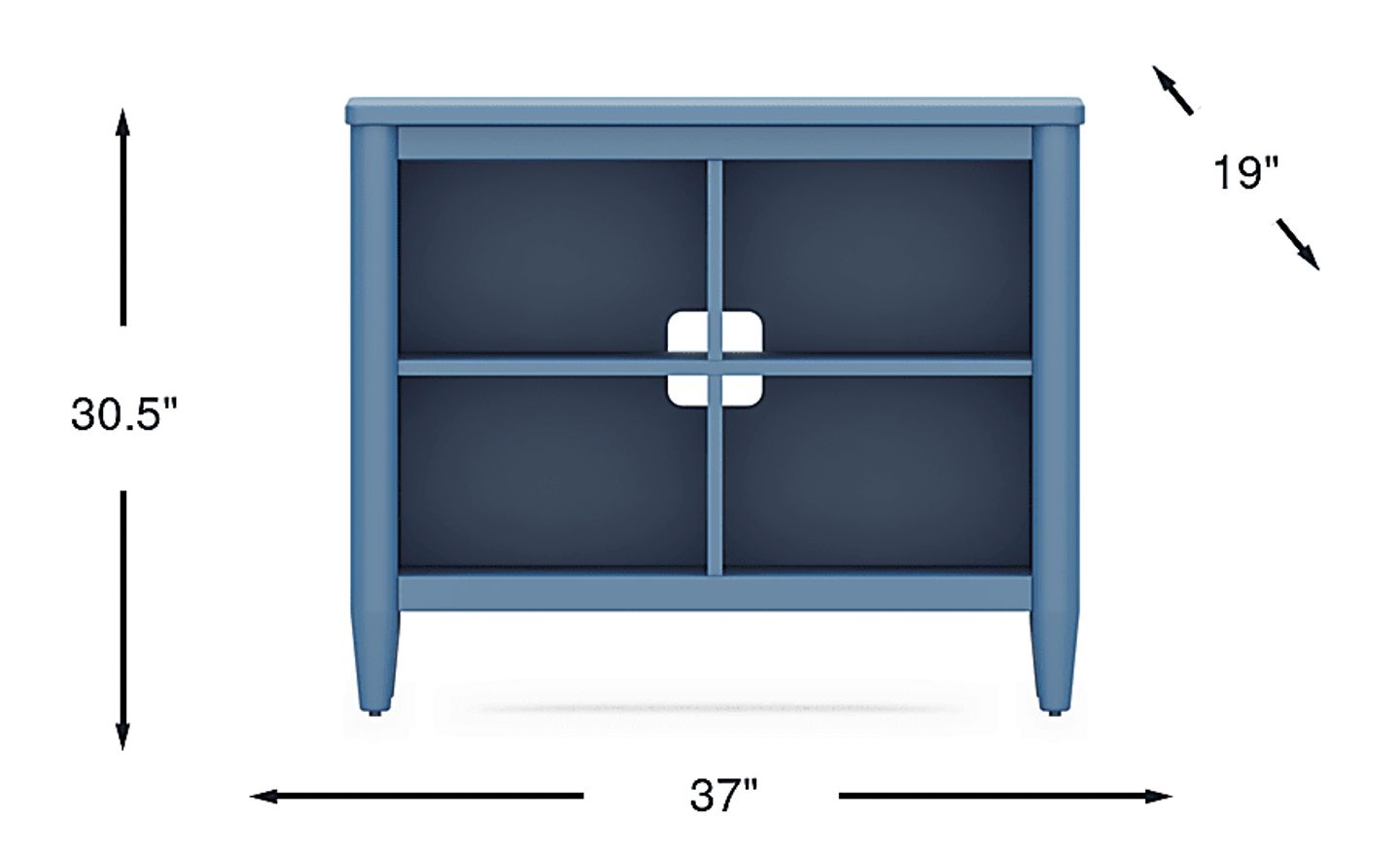 This bookcase features an efficient four-cubby layout designed to keep children's rooms organized. With overall dimensions of 37"W x 19"D x 30.31"H, it offers ample space for shelving oversized board books, comic book collections, and decorative bins. The 19-inch depth is particularly generous for a kids' piece, providing a stable platform for toys or a small lamp on the top surface.