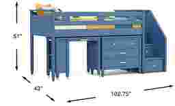 The ultimate collection for your color obsession is finally here with the Modern Colors twin low loft bed. Showcasing slate blue finish, each piece balances ultra-sleek craftsmanship with easygoing comfort. Featuring a twin bed that sits lower to the ground than a traditional loft, this piece has a reversible staircase that can be affixed to either side of the bed. The steps feature storage drawers that are perfect for stashing away clothing, books and more. The coordinating loft chest has three drawers crafted with front French dovetail joints and ball bearing, side mounted glides. Soar through study time with the coordinating caster desk that can be wheeled out and around at a moment's notice. The desk even has a couple cubbies that are perfect for textbooks or homework supplies. The hardware is finished in brushed nickel but brushed gold knobs and pulls are also included with purchase. Mattress and foundation (if required) sold separately. This product requires a bunkie board (sold separately).