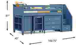 Kids Modern Colors Slate Blue Twin Step Loft With Loft Chest, Bookcase And Desk