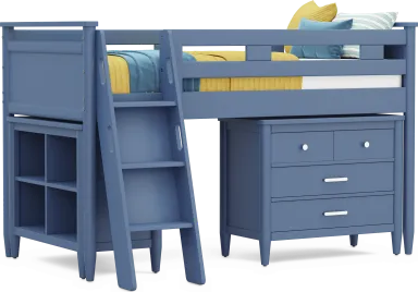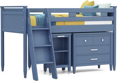 Kids Modern Colors Slate Blue Twin Step Loft With Loft Chest