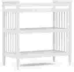 Timeless charm meets gentle nursery comfort in the ingeniously designed Modern Colors changing table. This versatile piece offers a safe and convenient spot for daily care routines. Two spacious shelves provide open storage for diapers, wipes and more easy to reach essentials. White finish keeps the look nice and versatile. Tapered spun legs complete the design with a chic, modern touch that coordinates seamlessly an array of nursery styles. Changing pad sold separately.