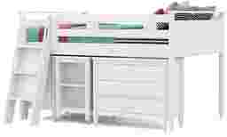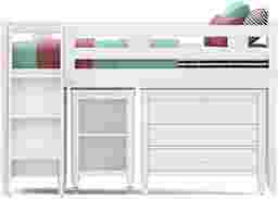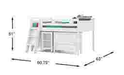 The ultimate collection for your color obsession is finally here with the Modern Colors full low loft bed. Showcasing white finish, each piece balances ultra-sleek craftsmanship with easygoing comfort. Featuring a full bed that sits lower to the ground than a traditional loft, this piece features a ladder that affixes to the side of the frame for three easy steps up and three easy steps down. The coordinating loft chest has three drawers crafted with front French dovetail joints and ball bearing, side mounted glides. Soar through study time with the coordinating caster desk that can be wheeled out and around at a moment's notice. The desk even has a couple cubbies that are perfect for textbooks or homework supplies. A matching 52-inch bookcase can shelve books, comics, magazines, decor and more. The hardware is finished in brushed nickel but brushed gold knobs and pulls are also included with purchase. Mattress and foundation (if required) sold separately. This product requires a bunkie board (sold separately).