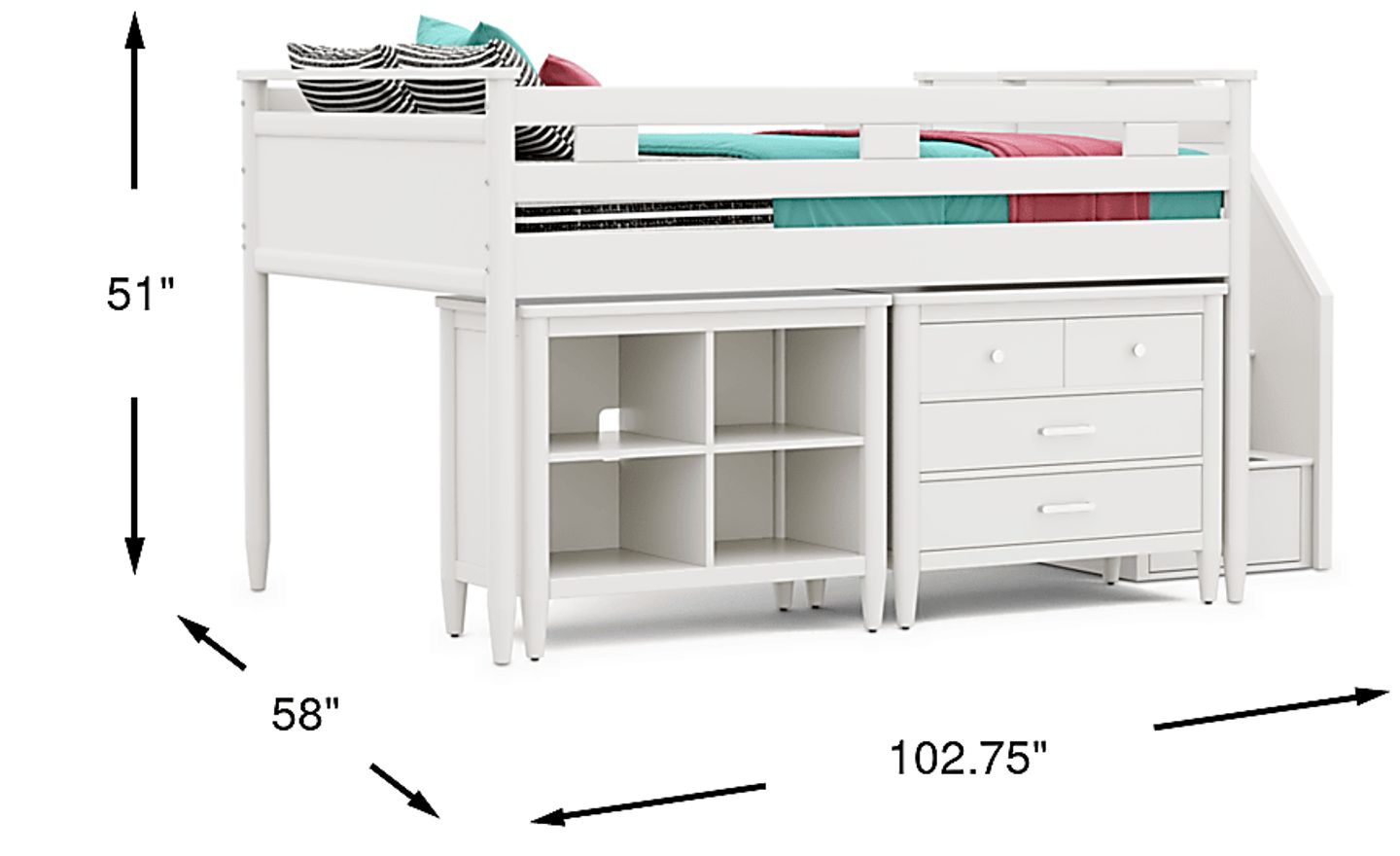 Kids Modern Colors White Full Step Loft With Loft Chest And Bookcase