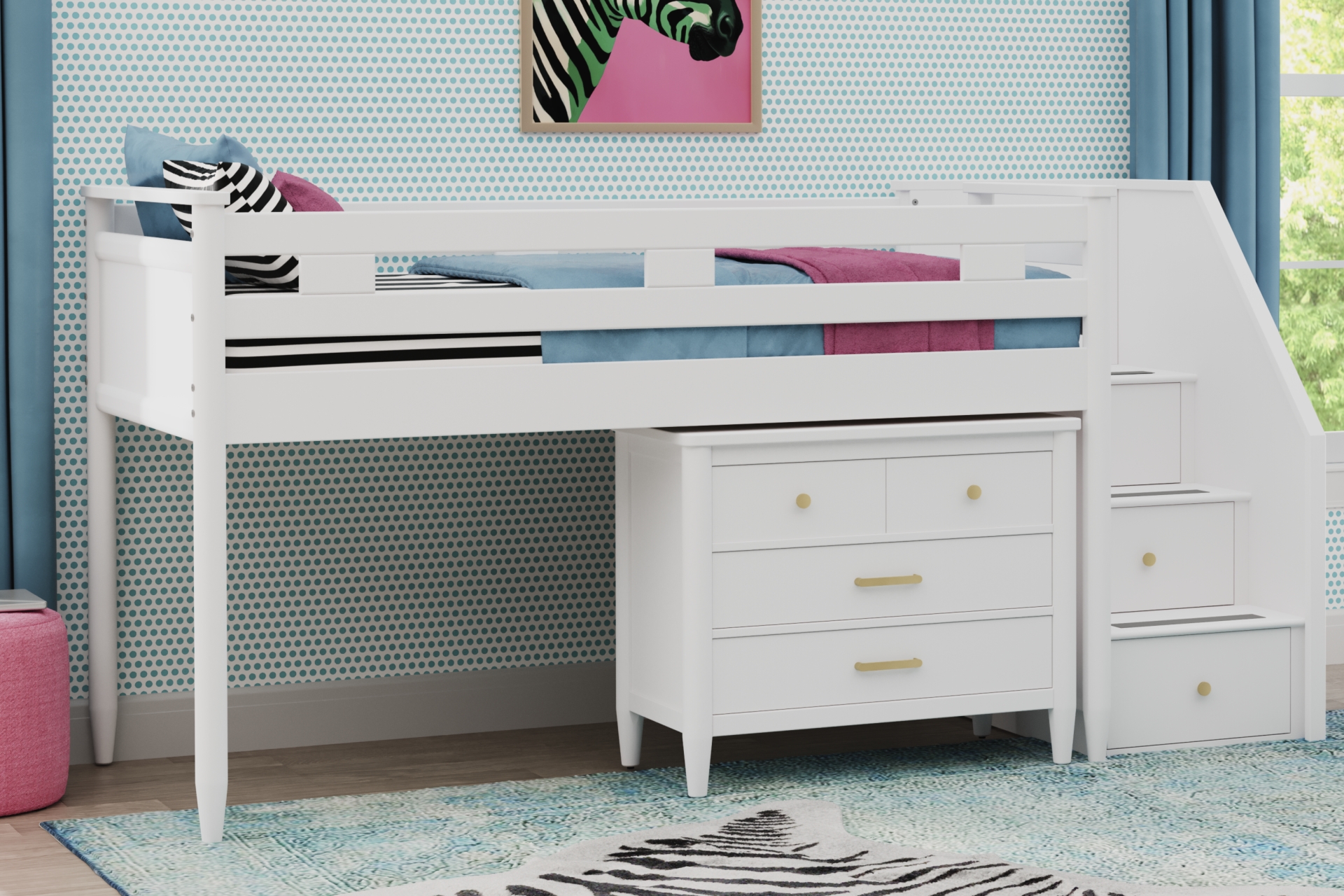 Kids Modern Colors White Full Step Loft With Loft Chest
